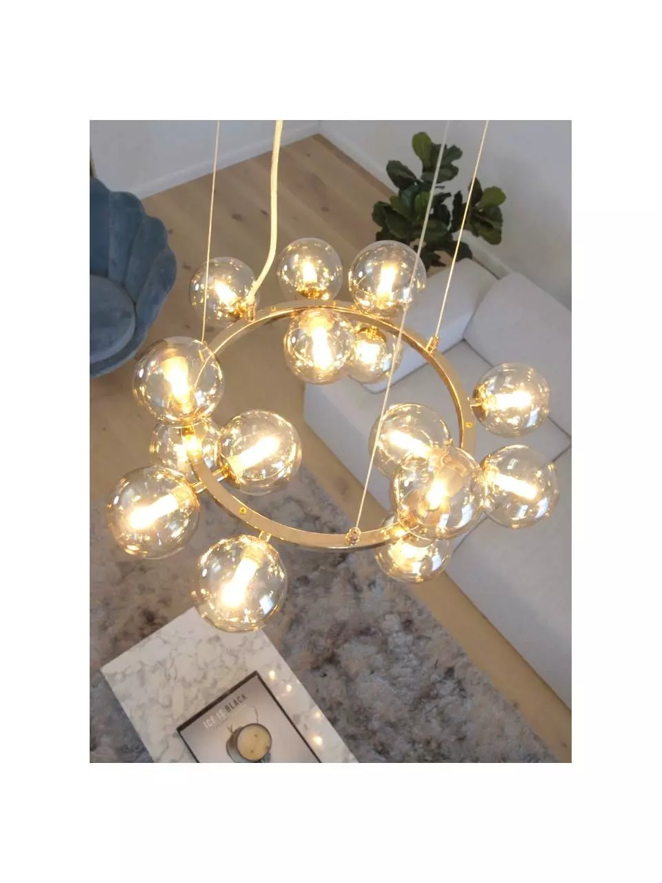 – Mit 15 Lampenschirmen aus mundgeblasenem Glas