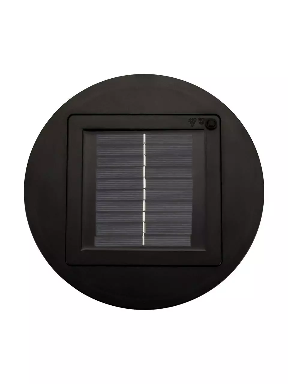 Akku der Solarleuchte wird über die verbauten Solarzellen aufgeladen, Betrieb nur im Solarmodus möglich
