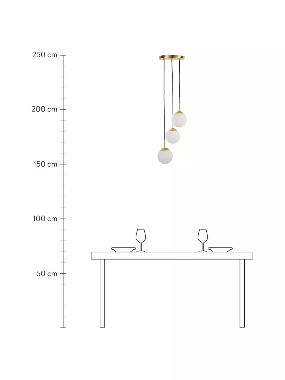 Abhängung von der Decke: höhenverstellbar bis max. H 118 cm