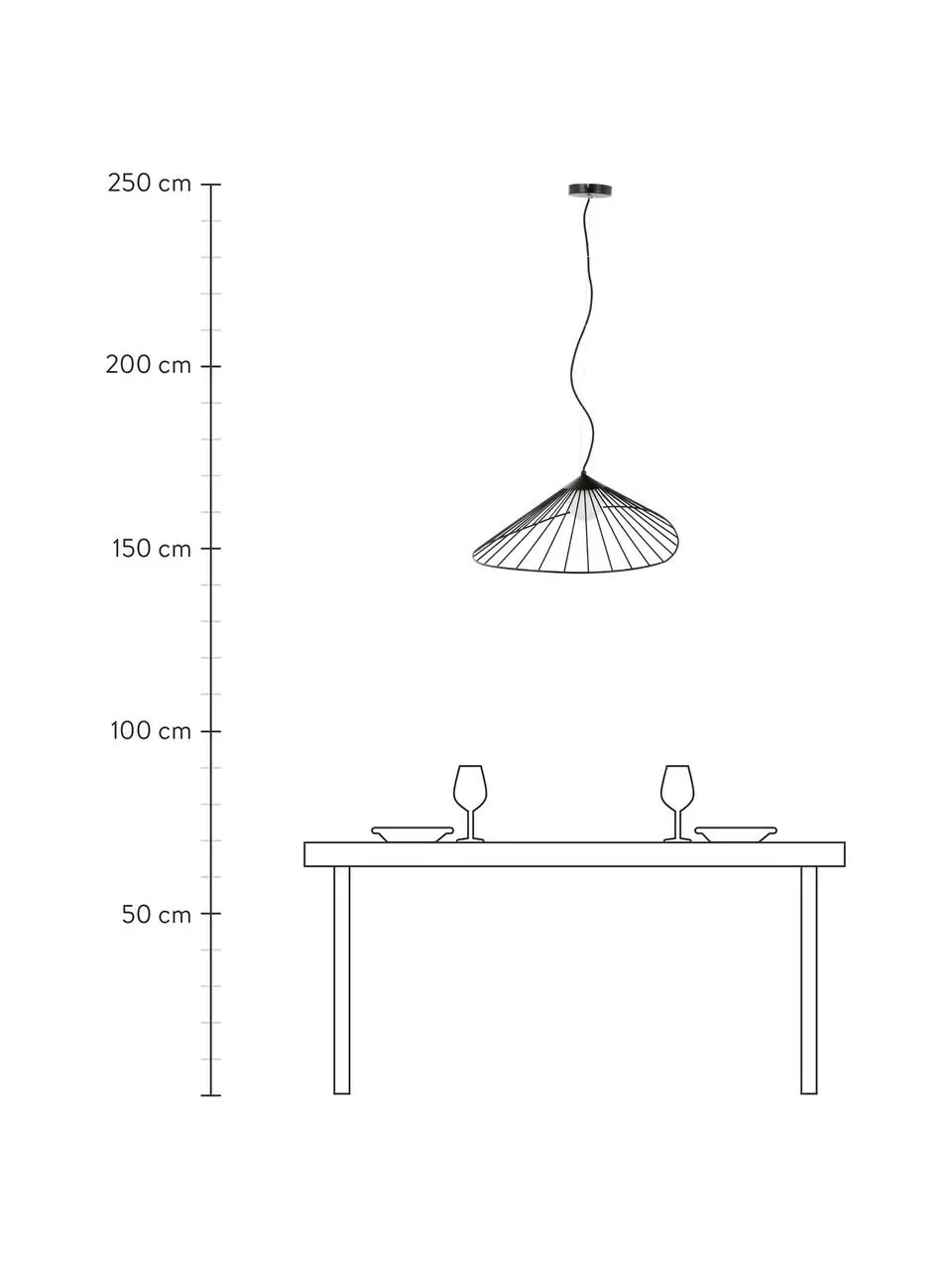 Abhängung von der Decke: höhenverstellbar bis max. H 150 cm