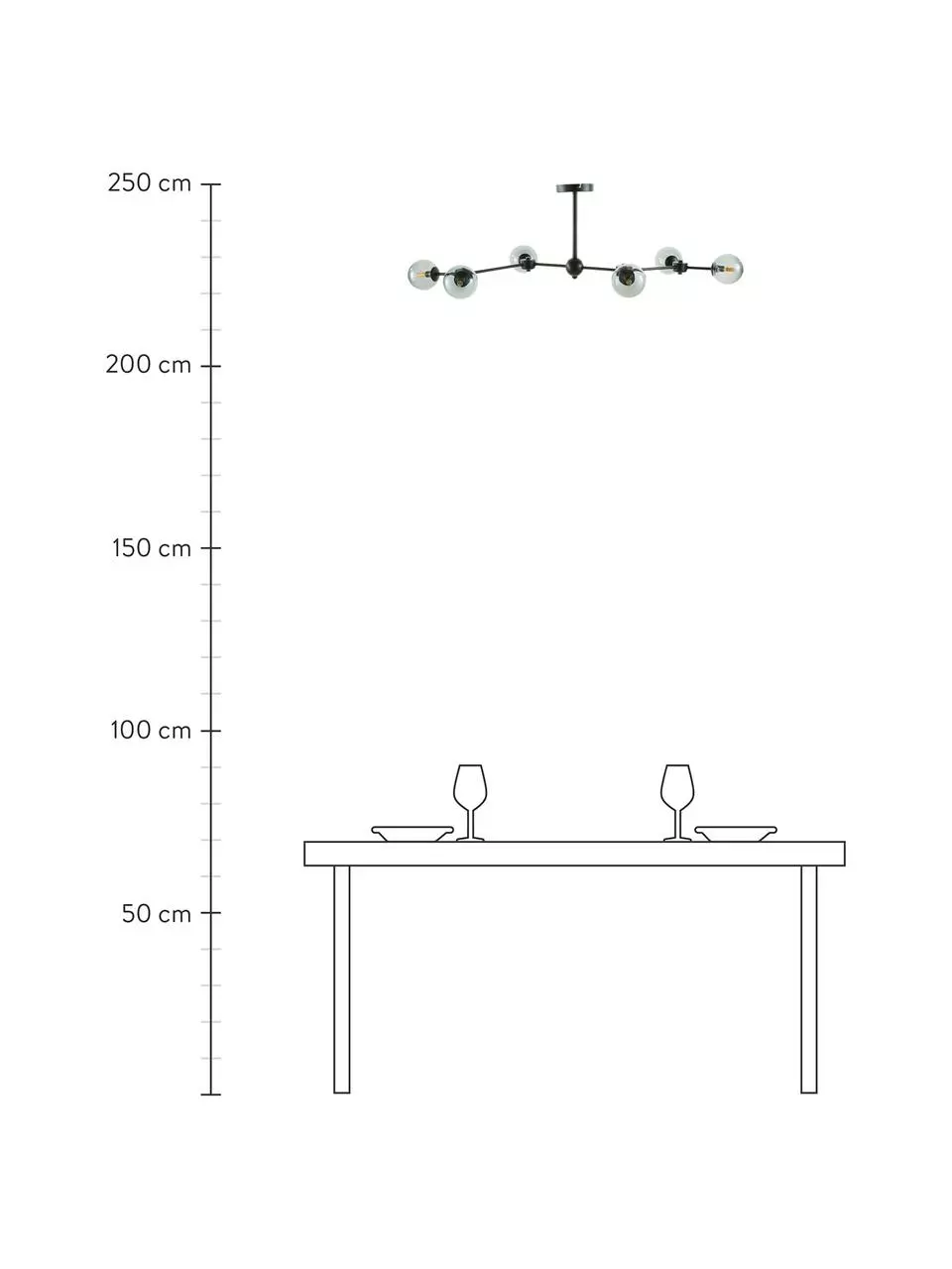 – Lampenarme und Abhängestange nicht verstellbar