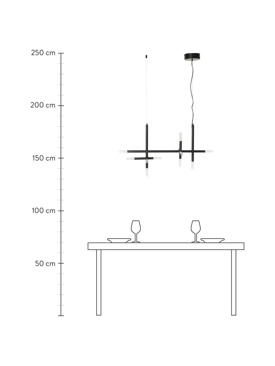 Abhängung von der Decke: höhenverstellbar von H 90 cm bis H 150 cm