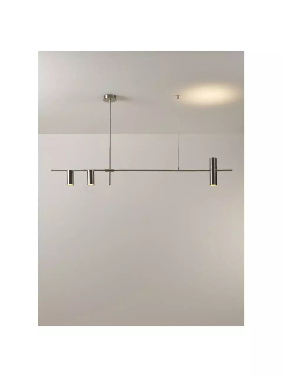 – Drei Lichtkegel scheinen auf den Boden, ein Lichtkegel scheint an die Decke