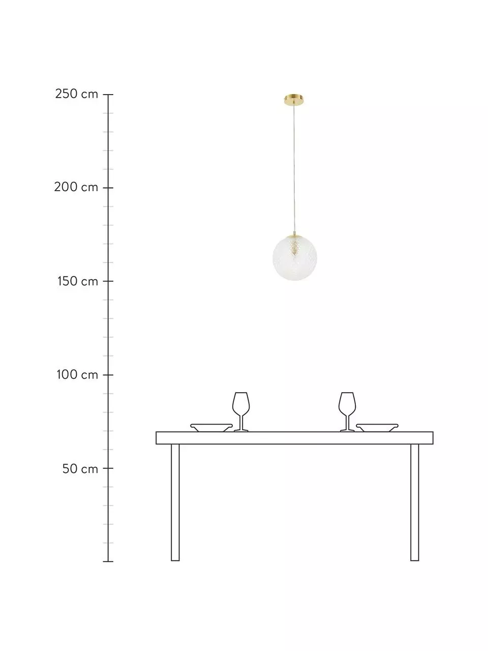 Abhängung von der Decke: höhenverstellbar bis max. H 182 cm
