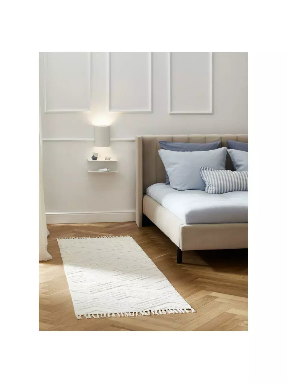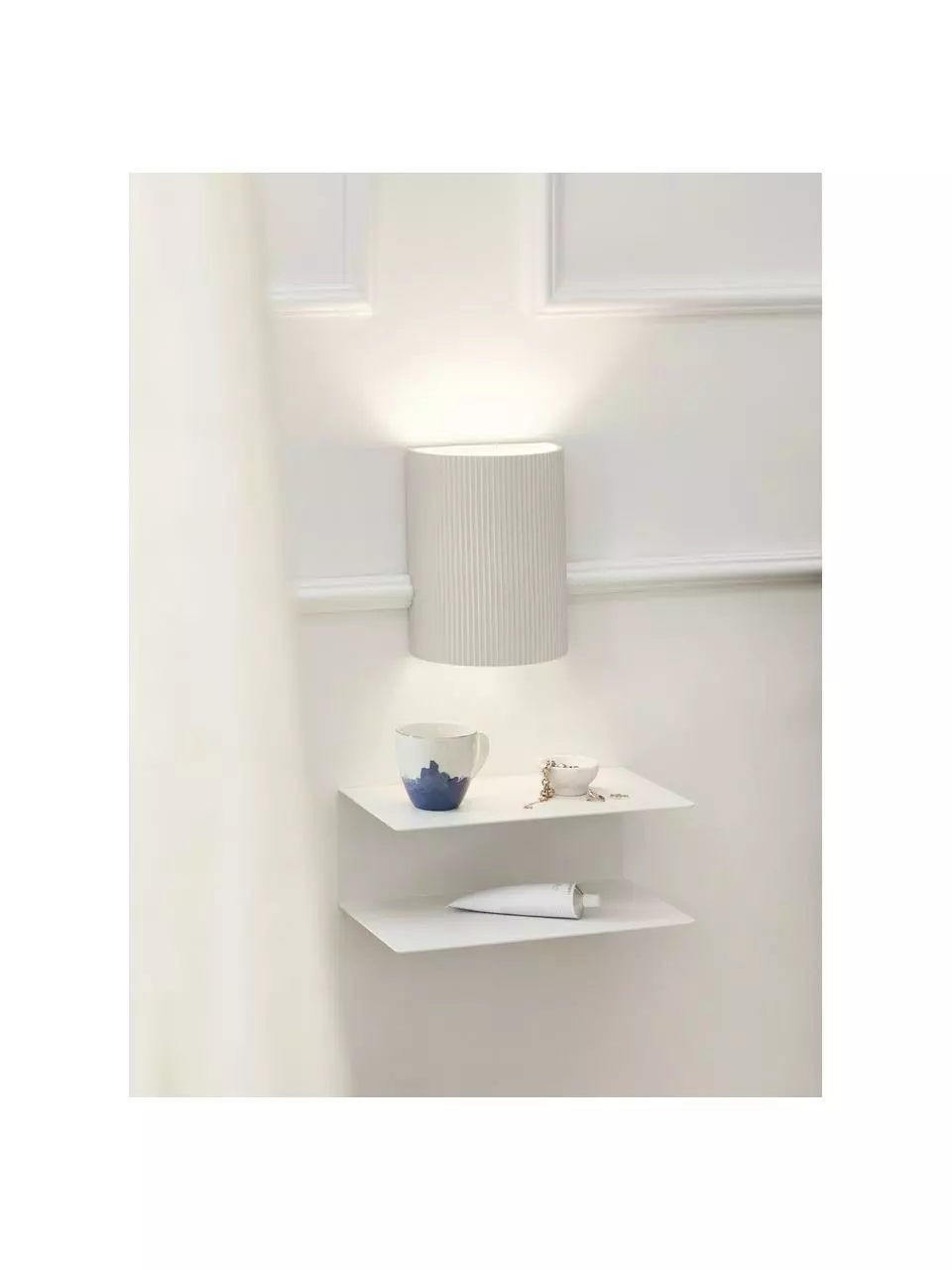Die Wandleuchte wird ohne externes Kabel und Schalter geliefert und muss über ein Unterputzkabel in der Wand angeschlossen werden.