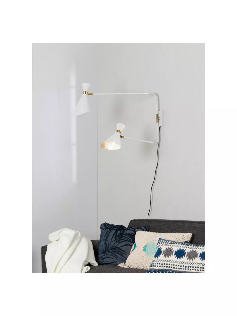 Die Wandleuchte kann dank des Kabels mit Stecker einfach an eine normale Steckdose angeschlossen werden und benötigt kein Unterputzkabel.